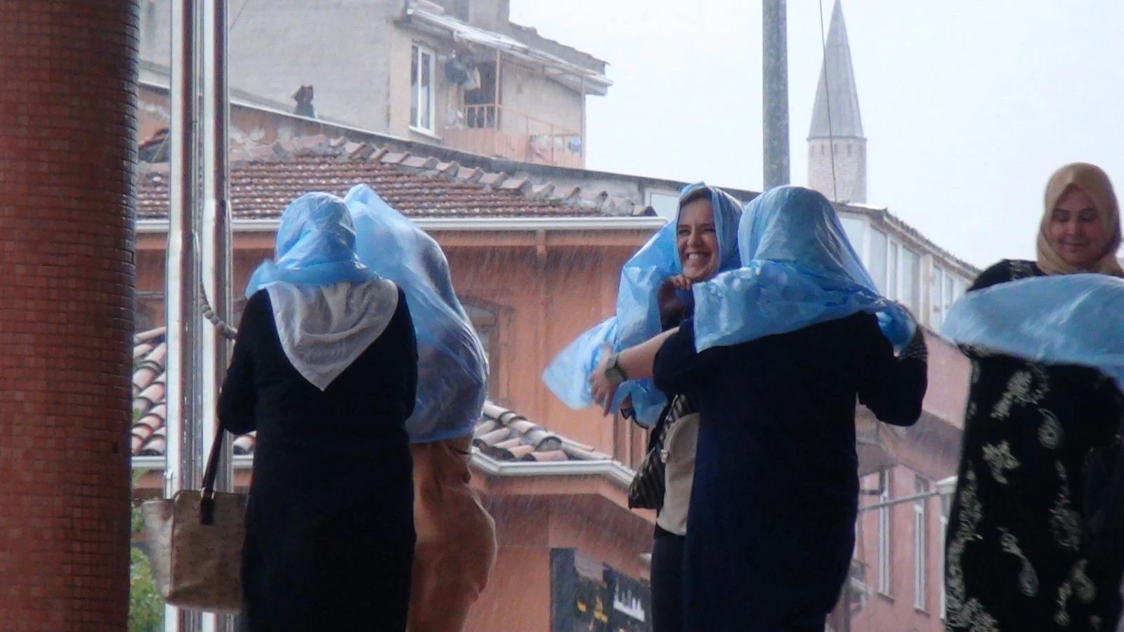Öte yandan kameraya yansıyan ilginç görüntülerde 6 kadının başına poşet geçirdiği görüldü. Yağmurdan korunmak için başlarına poşet geçiren kadınlar, ilginç görüntü oluşturdu. Yağmur sebebiyle vatandaşların ıslanmamak için koşturmaları da kameraya yansıdı.