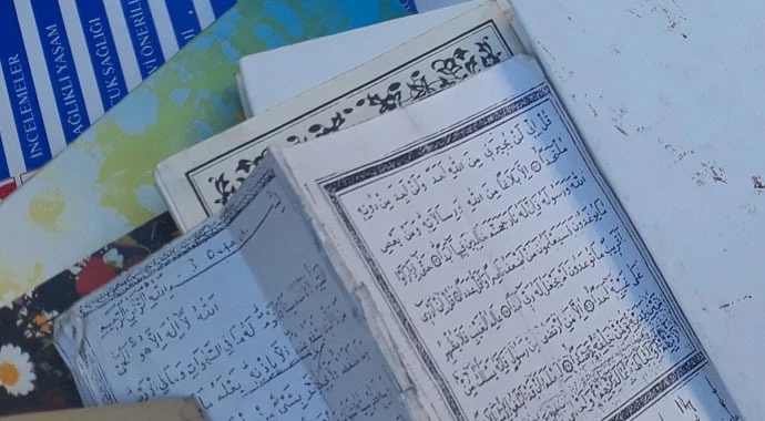 Kimliği belirsiz kişi ya da kişilerce çöpe atılan Kur’an, fıkıh, hadis, meal ve ilmihal gibi çeşitli dini kitapların yanı sıra temel sağlık eğitimine dair ciltlerde vatandaşlar tarafından toplandı. Durumu belediye ekiplerine bildiren vatandaşlar, dini kitapları yetkililere teslim ettiler.