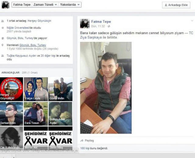 Şehit Uzman Çavuş Ziya Sarpkaya, dün gözyaşları içinde memleketi Bolu’nun Göynük ilçesinde binlerce kişinin katıldığı cenaze töreniyle toprağa verilirken, bir süre sonra evlilik planları yaptığı kız arkadaşı Fatma Tepe, Facebook hesabından acısını paylaştı.