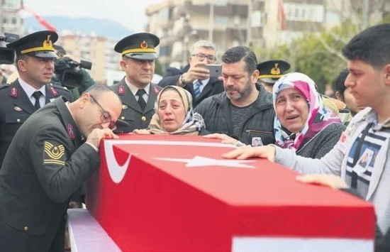 İZMİR: Uzman Çavuş Uğur Palancı 10 gün önce Afrin'e gitmişti. Gaziemir ilçesindeki Gülhane Camisi'nde düzenlenen törene, emekli polis memuru baba İhsan Palancı, anne Yasemin Palancı, kardeşleri, Kalkınma Bakanı Lütfi Elvan ve AK Parti Genel Başkan Yardımcısı Hamza Dağ'ın da aralarında olduğu binlerce kişi katıldı. Palancı, Kadifekale Hava Şehitliği'ne defnedildi.