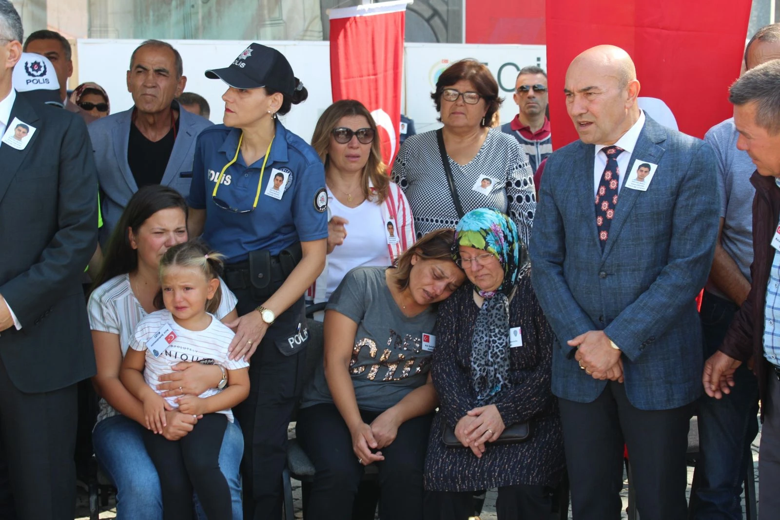 Törene ayrıca; İzmir Valisi Erol Ayyıldız, İzmir Büyükşehir Belediyesi Başkanı Tunç Soyer, şehit ailesi, yakınları, askeri erkan katıldı.