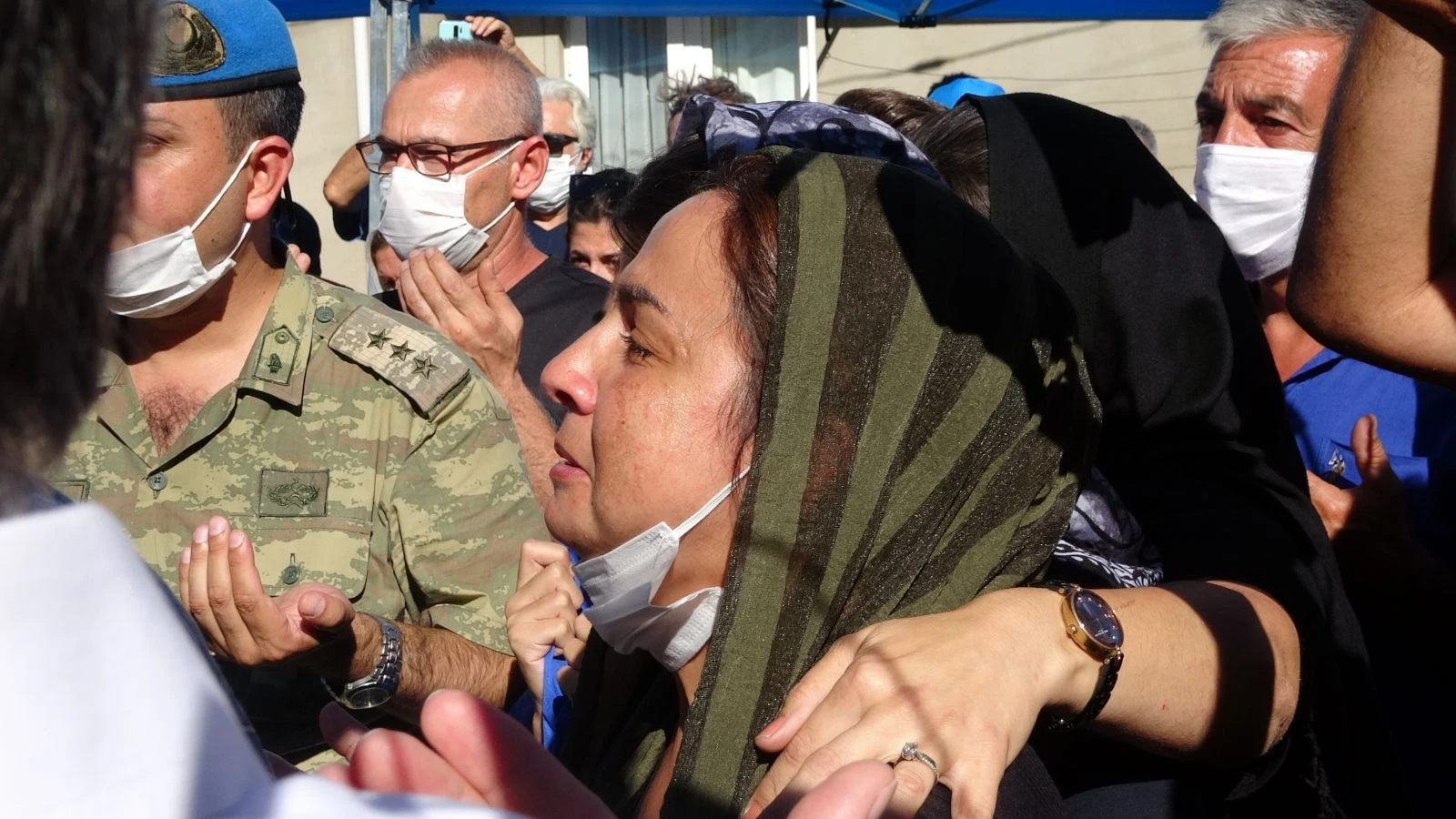 Cenaze töreni sonunda Milli Savunma Bakanı Hulusi Akar, şehit eşi Emine Erdoğan ve kızları Elif Naz ile Eylül’e, Türk bayrağını teslim etti. Aile üyeleri de öperek Türk bayrağını teslim aldı.