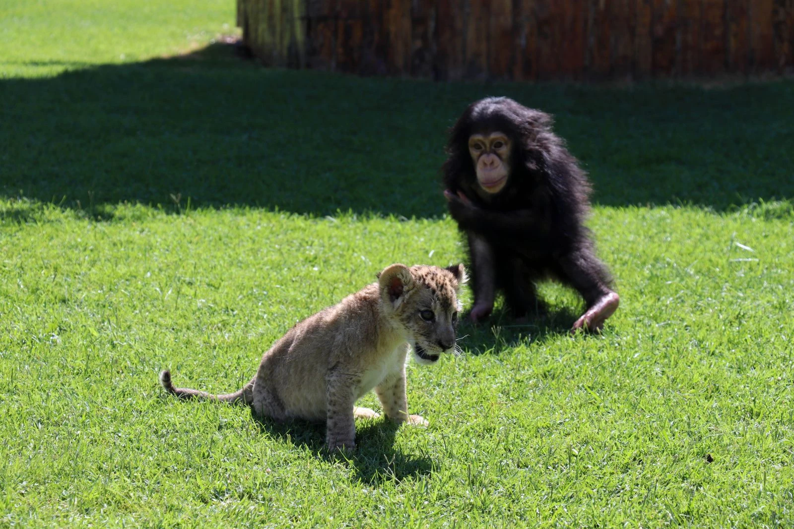 Yaklaşık 1 yıl önce doğduktan sonra annesi tarafından sahiplenilmeyen ve bakıcıların kucağında adeta bebek gibi büyütülen 'Can' isimli şempanze, hayvanat bahçesinin maskotu ve simgesi haline gelmişti. Geçtiğimiz günlerde ise Şırnak'ın Cizre ilçesinde yol uygulaması sırasında polis ekiplerince bulunan ve el konulduktan sonra Gaziantep Hayvanat Bahçesine getirilen 2 aylık 'Cesur' adındaki aslan yavrusu, şempanze Can’a arkadaşlık ediyor. Geçirdiği tramvanın ardından hayvanat bahçesine alışan Can, kafesten de kurtularak açık alanda yaşıyor. Şempanze Can'a aslan yavrusu Cesur arkadaşlık ediyor.