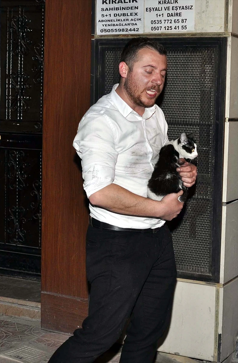 Bu sırada yangının çıktığı evde iki kedinin bulunduğunu fark eden itfaiye ekipleri, yatak altına saklanan kedileri bularak sahibine teslim etti.