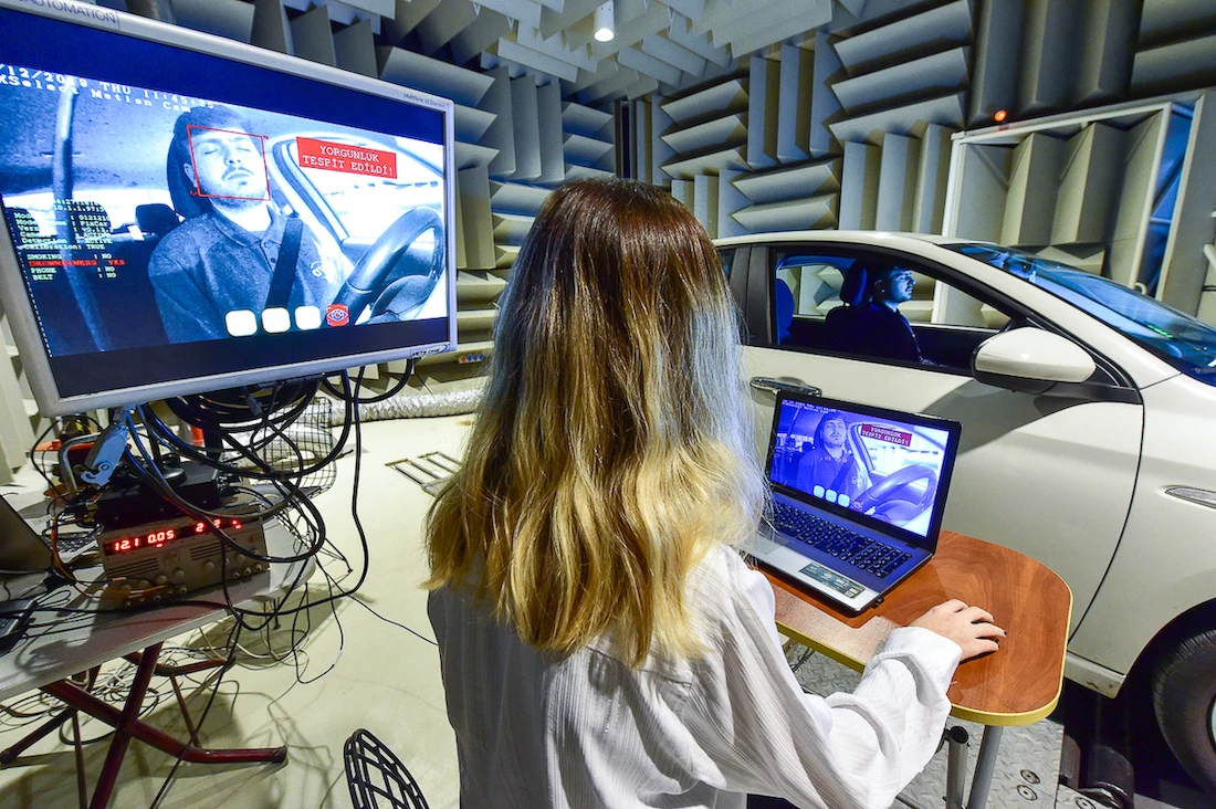 Otomotiv firmalarına yönelik test çözümleri sunan İTÜ OTAM (İstanbul Teknik Üniversitesi Otomotiv Teknolojileri Araştırma Geliştirme Merkezi), test laboratuvarlarında ileri teknolojiyi kullanarak otomotiv endüstrisine yönelik önemli hizmetlerini sürdürüyor. İTÜ OTAM son olarak, İTÜ ARI Teknokent'te yer alan PIXSelect isimli teknogirişim şirketiyle birlikte ‘Yapay Zekâ Sürücü Davranışlarını İzleme' projesini hayata geçirdi. Aracın dikiz aynasında yer alan yüksek çözünürlüklü kamerayla sürücüyü takip eden sistem, elde edilen görüntülerin yapay zekâ tarafından analiz edilerek sürücüyü ve merkezi uyarmasına dayanıyor. Sürücünün hareket halinde sigara içtiğini, telefonla konuştuğunu, uyukladığını veya emniyet kemerini bağlamadığını algılayabilen yapay zekâ teknolojisi, kamera görüntülerini merkeze ileterek anlık uyarılarda bulunuyor.