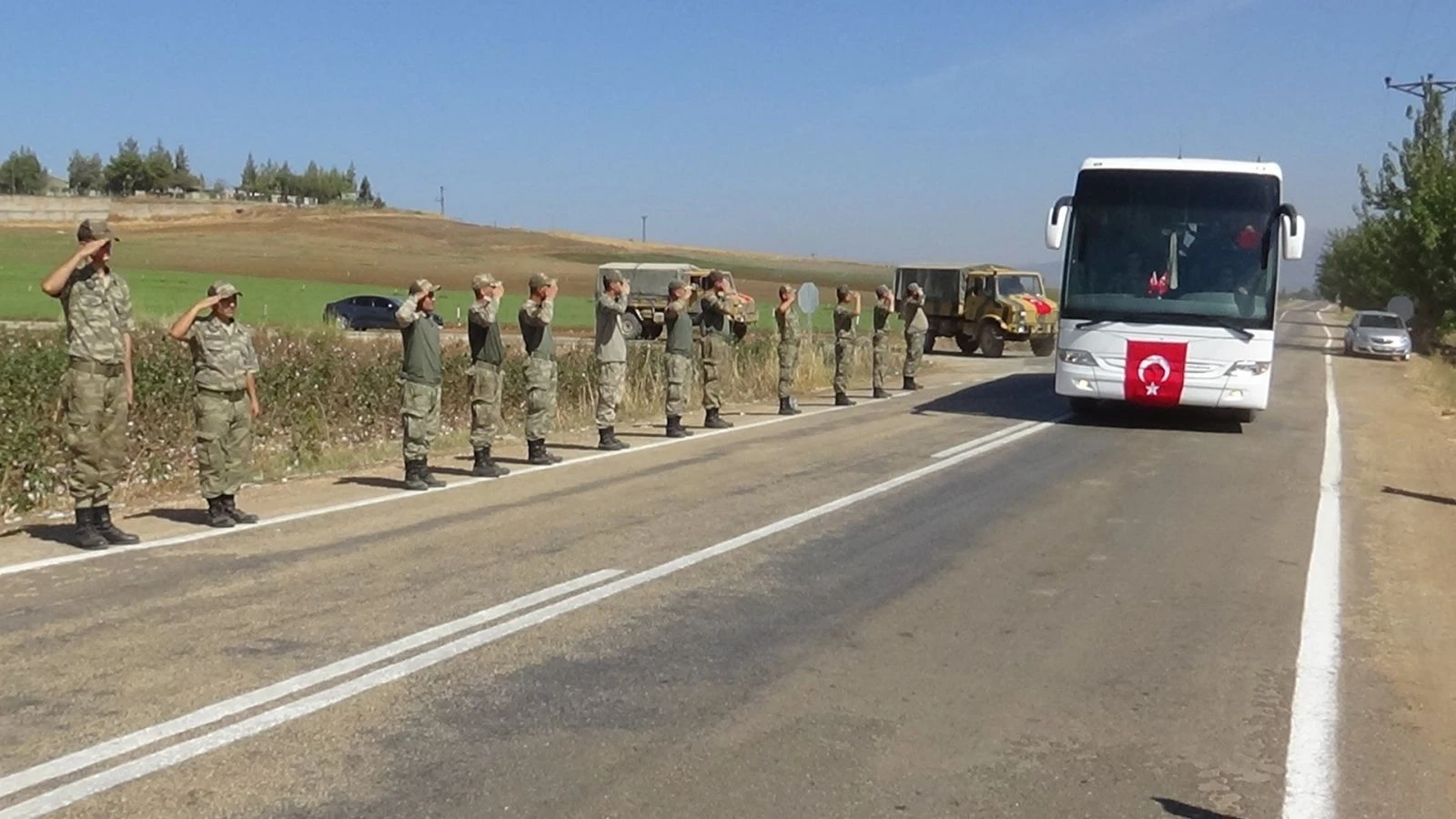 Sınır birliklerine giden komandoları, görev arkadaşları yola dizilerek asker selamıyla uğurladılar. Konvoyun Kırıkhan ilçesinde geçişi sırasında ise öğrenciler ellerinde Türk bayrakları ile konvoyu alkışladılar.
