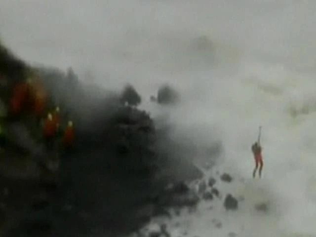 Karaya oturan gemideki mürettebat böyle tahliye ediliyor