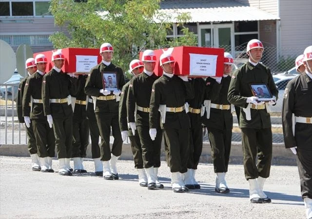 Astsubay Şenel Ağıl, Jandarma Onbaşı Sinan Hamza, Jandarma Er Muhammed Furkan Demirel'in Türk bayrağına sarılı naaşları Şırnak 23'üncü Jandarma Sınır Tümen Komutanlığına getirilerek katafalka konuldu. Törende, şehitlerin öz geçmişleri okunarak dualar edildi.