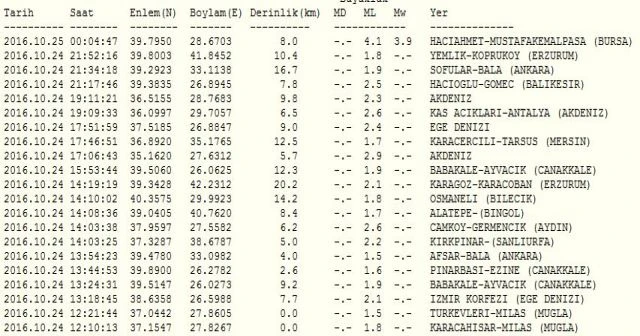 Başbakanlık Afet ve Acil Durum Yönetimi Başkanlığı (AFAD) Deprem Dairesi'nin tespitine göre, Bursa'nın Mustafakemalpaşa ilçesinde saat 00.04'te 3.9 büyüklüğünde deprem meydana geldi.