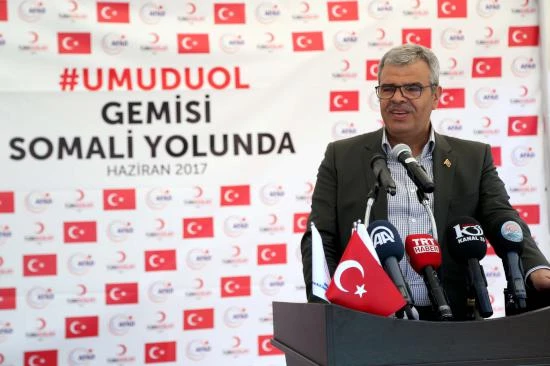 "2002 yılında sadece 80 milyon dolar dış yardım yapabilen bir ülkeden 2016 yılında 6,5 milyar dolar insani yardımlar yapabilen bir ülkeye gelindi. İnşallah bu çalışmalarımıza bundan sonra Lütfi Elvan ile beraber kalkınma projeleriyle devam edeceğiz. Evet onlar kendi ayakları üzerinde duruncaya kadar bu yardımlarımız devam edecek. Biz bu gemiyi Cumhurbaşkanımız ve Başbakanımızın talimatlarını yerine getirmek üzere un, şeker, çocuk mamasıyla donattık. Özel sektörden bir kısım şirketlerin desteğiyle önemli bir miktarda ilaç yardımı da götürüyoruz. Somali'de ilk asfalt yolu Türkiye Cumhuriyeti yapmıştır. Somali'de hangi kapıyı çalarsanız çalın tek umut Türkiye, tek umut Türk kardeşleridir. Rabbim bizleri bu umudu boşa çıkarmadan hem milletimize hem mazlum, mağdur insana hizmet etmekte daim kılsın inşallah. Bu gemi inşallah Kadir Gecesi'ne Somalilerin imdadına yetişsin."