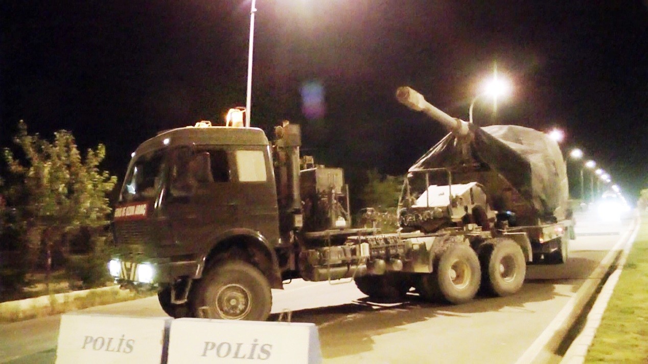 Edinilen bilgiye göre, Türkiye’nin farklı askeri birliklerinden geldiği tahmin edilen içinde fırtına obüslerinin ve mühimmatın bulunduğu 15 kadar araç gece geç saatlerde Suriye sınırında bulunan Ceylanpınar ilçesine geldi. Askeri konvoy yoğun güvenlik önlemleri altındaki sınır birliklerine doğru hareket etti.