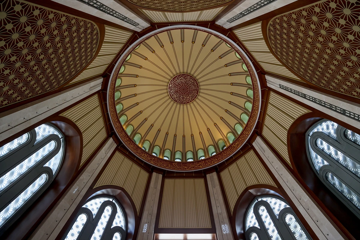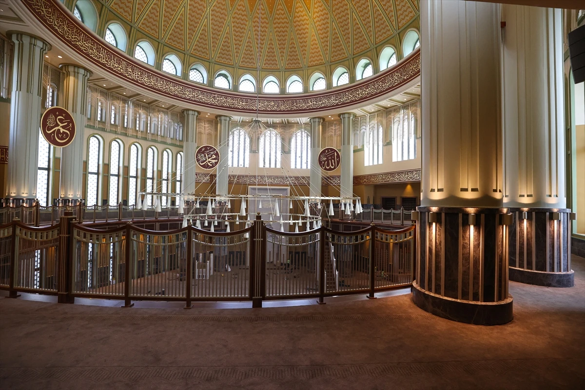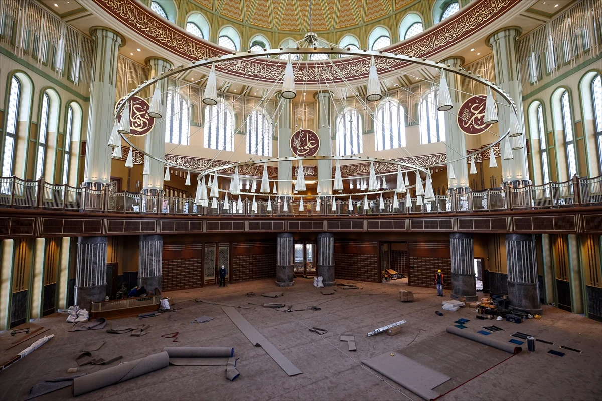 2 bin 482 metrekare arsa alanına, yaklaşık 16 bin 500 metrekare de inşaat alanına sahip caminin içerisindeki boyama işlemleri tamamlanırken, namaz alanındaki ahşap duvar kaplamaları ile camlara korkuluklar takıldı.