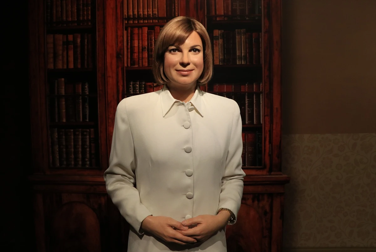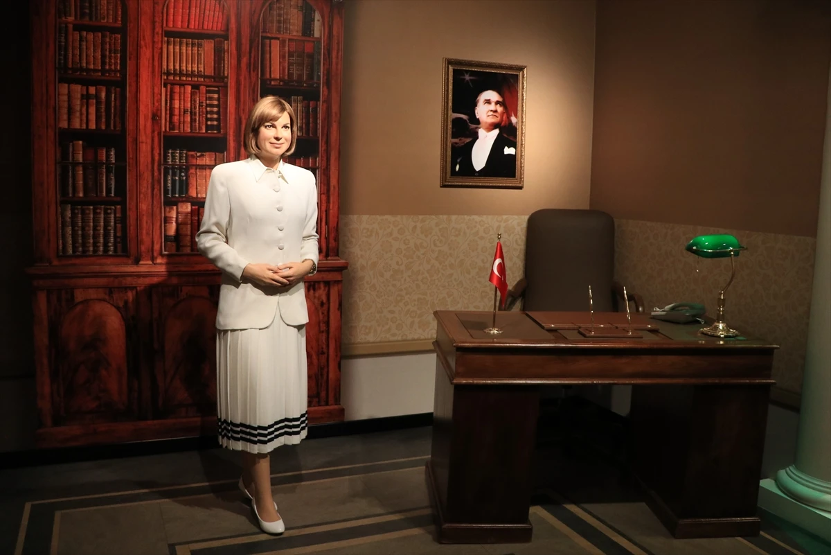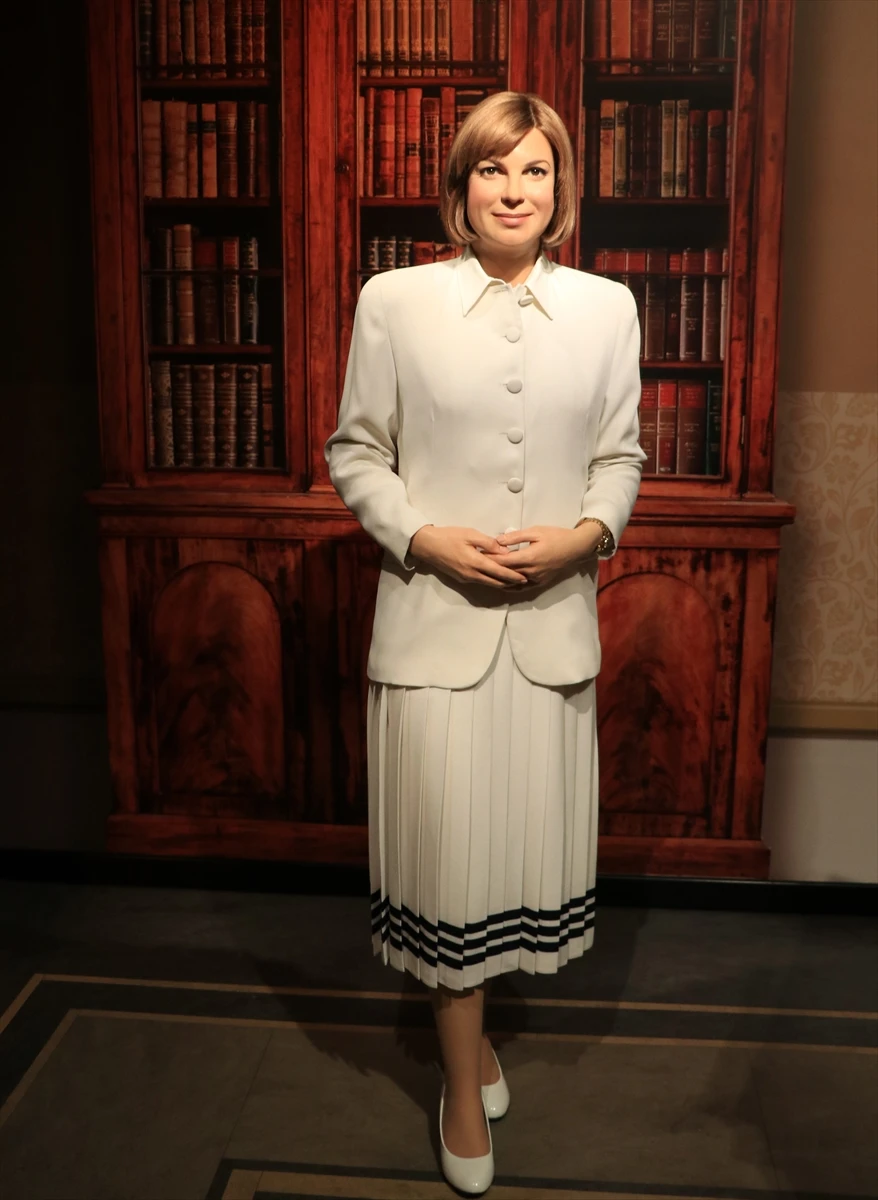 Türkiye'nin ve dünyanın ünlü isimleriyle yan yana sergilenen figür, Çiller'in fotoğraf arşivinden, kendisinin de onayıyla seçilen bir pozun belirlenmesinin ardından Londra'da hazırlandı.