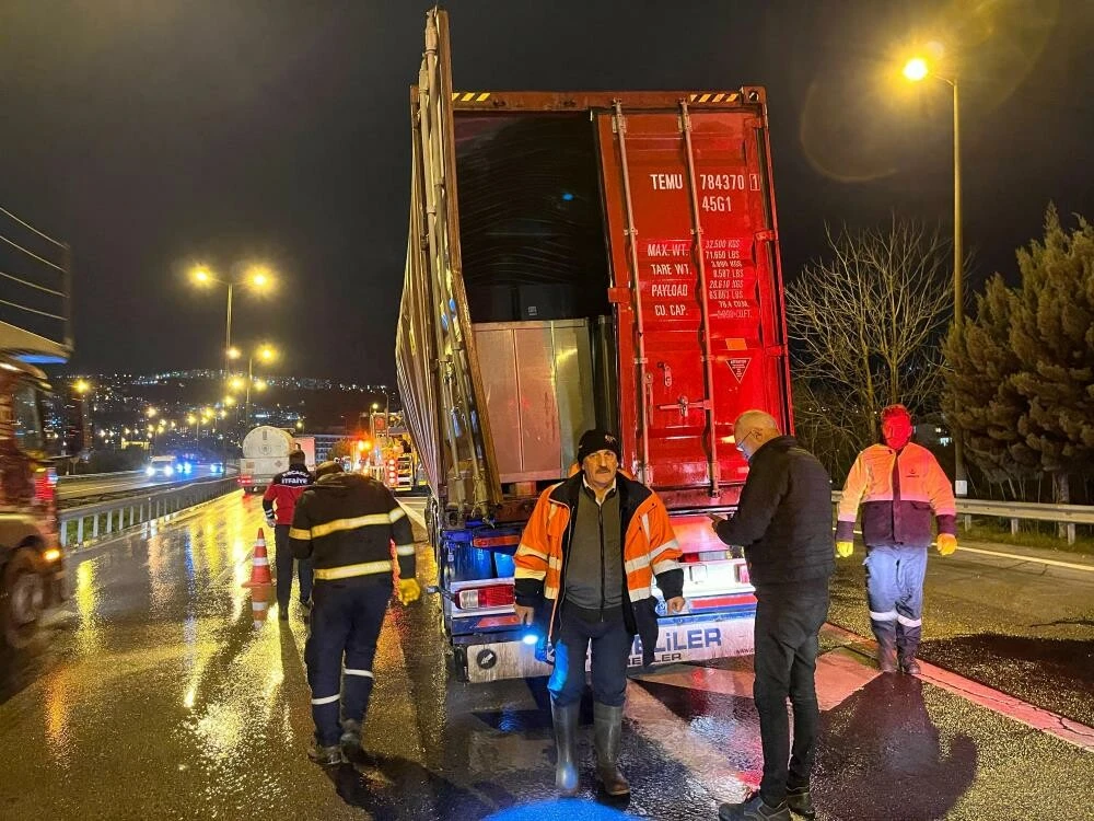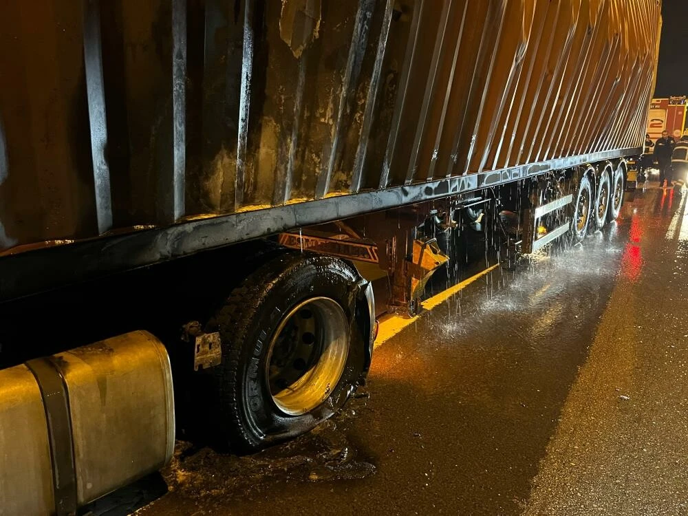 Yükselen alevleri fark eden sürücü, tırı sağ şeritte durdurarak 112 Acil Çağrı Merkezini aradı. İhbar üzerine bölgeye itfaiye, sağlık ve polis ekipleri sevk edildi. Tekerlekte başlayan yangın büyüyerek dorsedeki plastik hammaddeye sirayet etti.