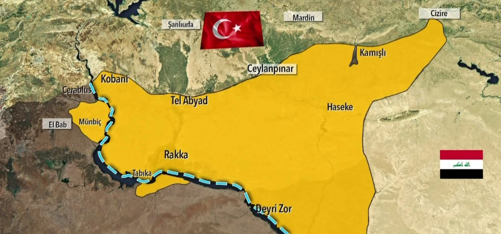 Kahraman Mehmetçiğimiz ve Özgür Suriye Ordusu harekâta hazır. Suriye’nin Kuzeyi’nde 550 kilometrelik sınır hattı PKK terör örgütünün işgali altında. İşbirlikçi ABD’nin desteğiyle terör örgütleri sınır hattına mevzilendi. Cumhurbaşkanı Recep Tayyip Erdoğan, operasyon işaretini verdi.