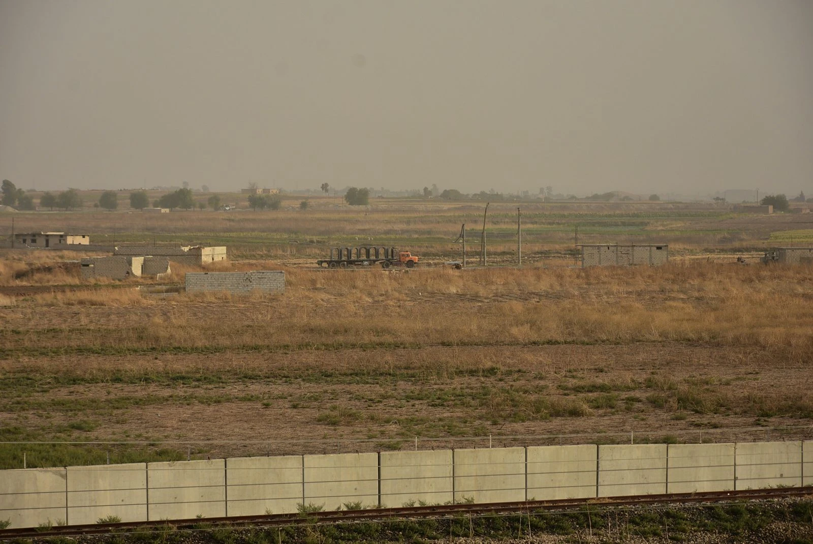 Türkiye ve Özgür Suriye Ordusu'nun Fırat'ın doğusunda olası askeri operasyonuna karşı panikleyen terör örgütünün beton blok taşıma çalışmaları, Ras'ül Ayn karşısında bulunan Ceylanpınar ilçesinden görüldü.