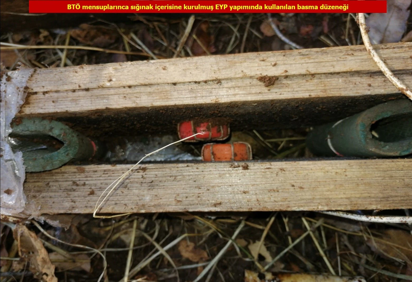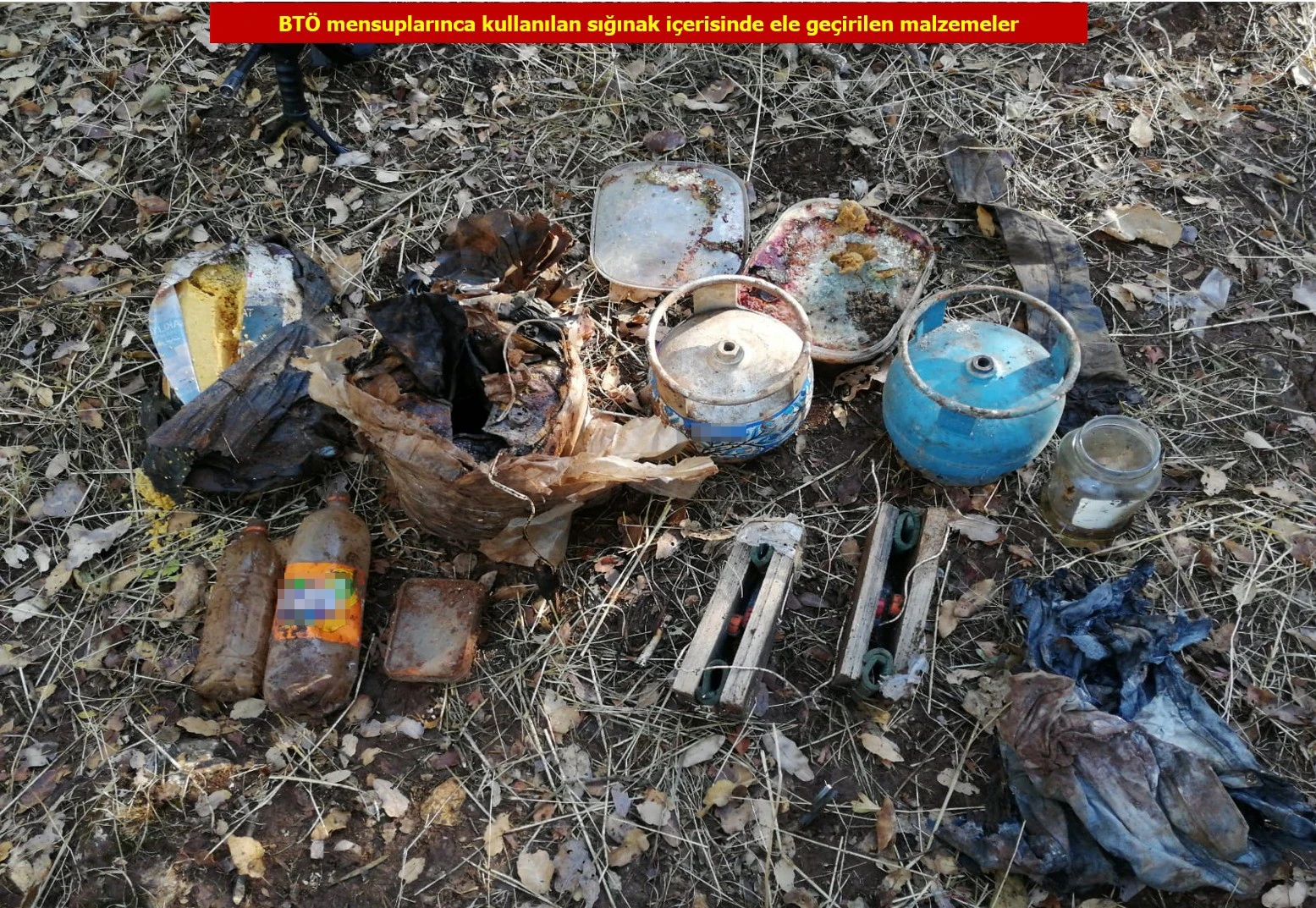 Sığınak içerisinde amonyum nitrat ve şeker karışımlı el yapımı patlayıcı bulunurken, operasyonlarda çok sayıda mühimmat ele geçirildi.