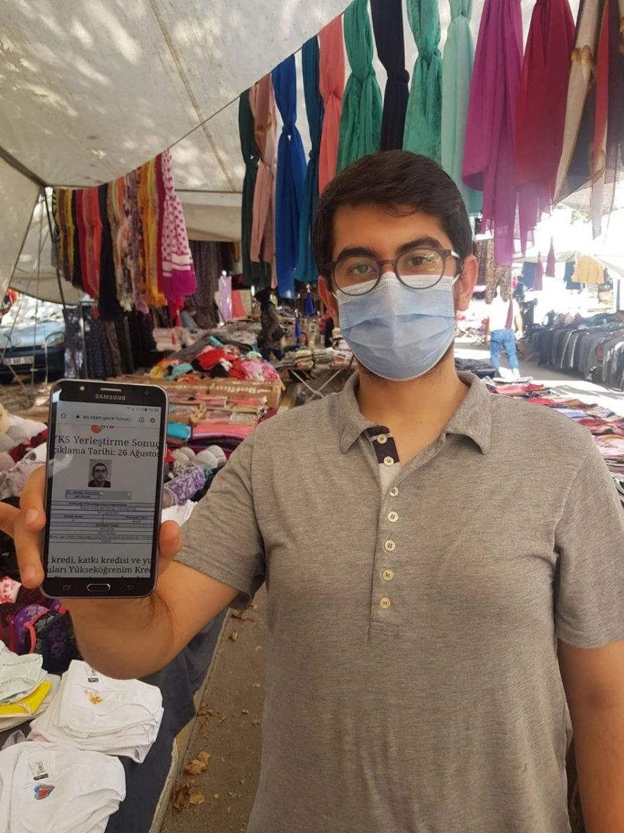 Tokat'ın Turhal ilçesinde yaşayan Melih Buğra Ertek (19), merakla beklediği sonucu çalıştığı pazar tezgahında aldı.