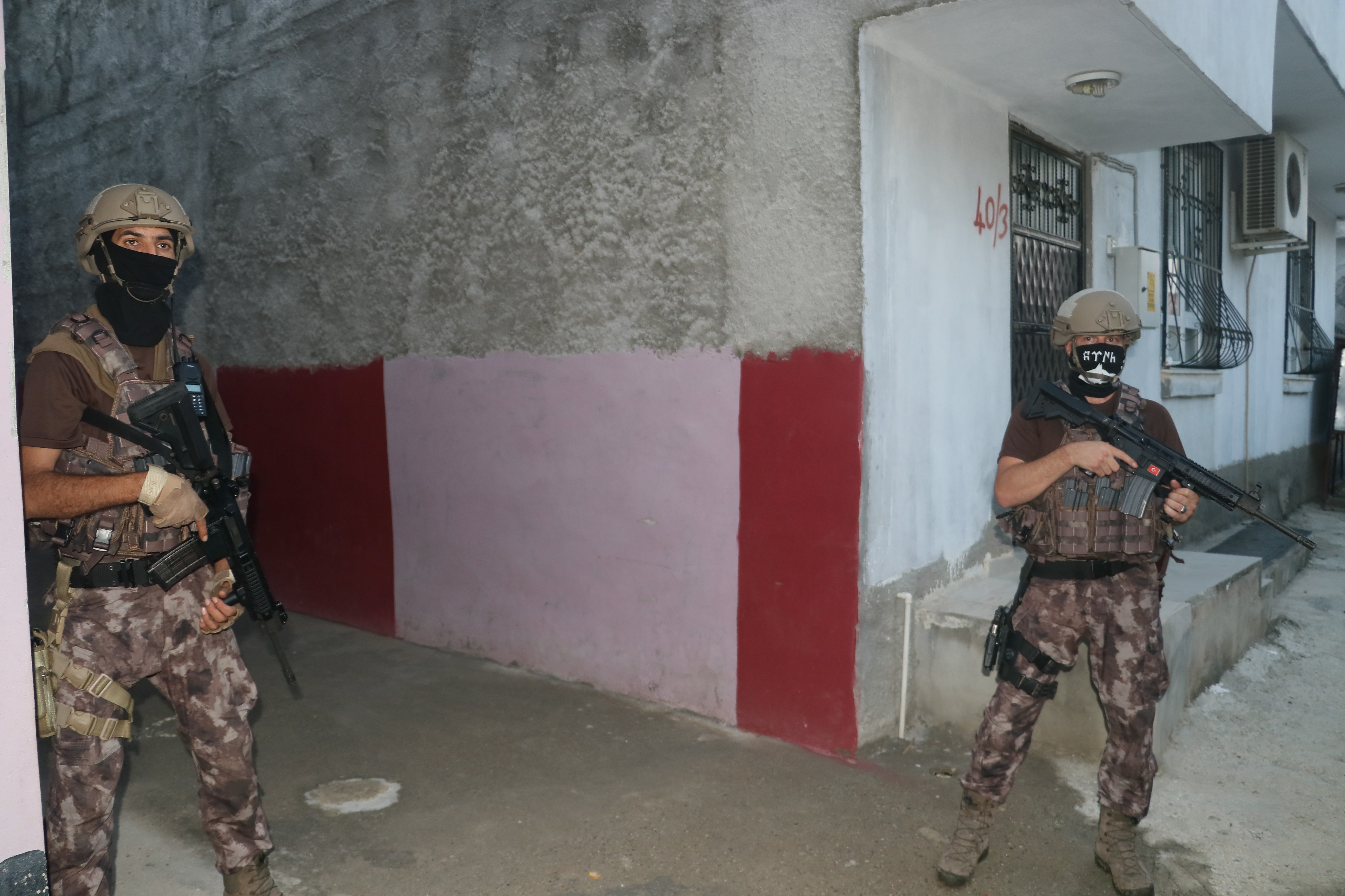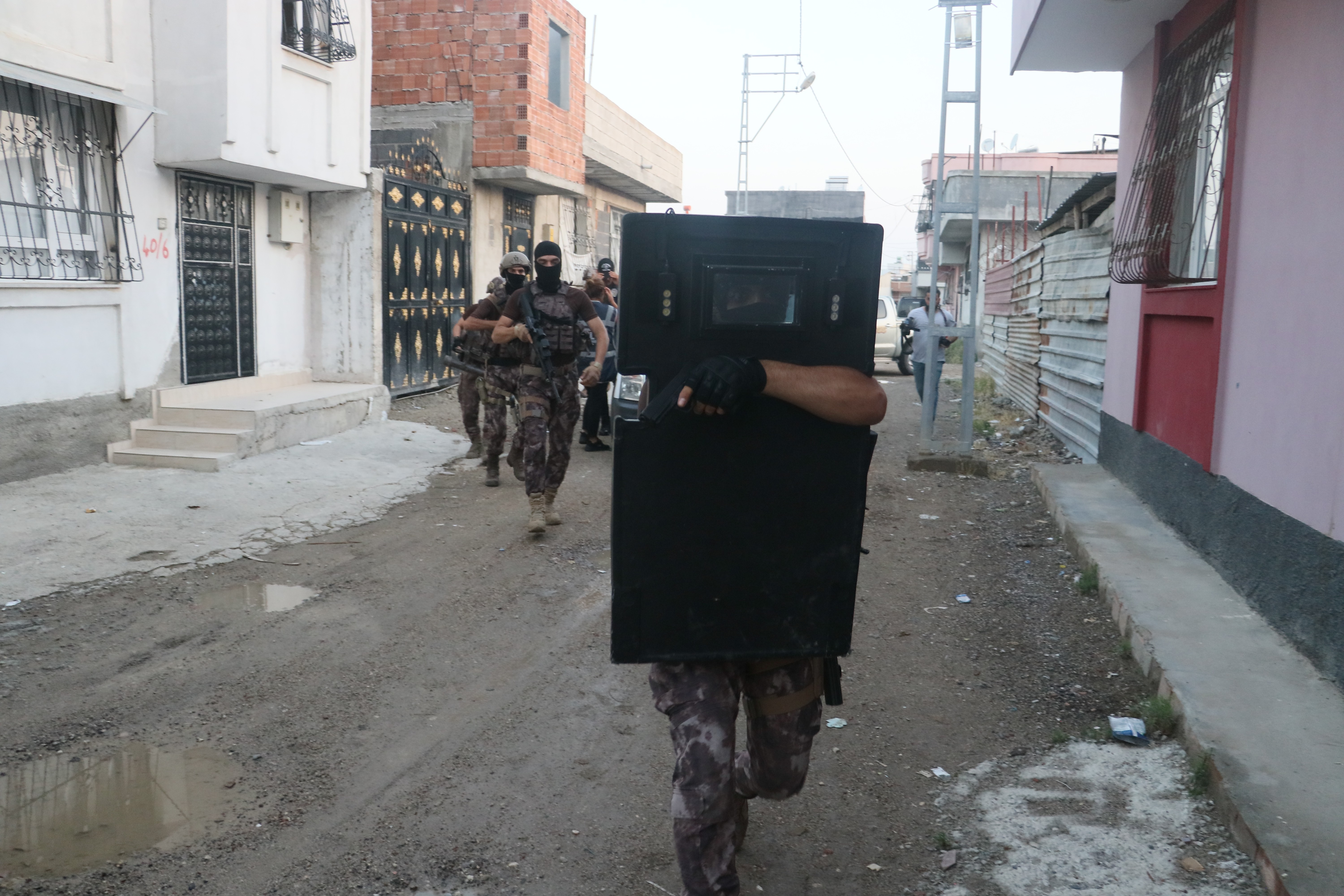 Özel Hareket polislerinin de desteği ile eş zamanlı baskınlar yapıldı. Baskın sırasında bir şüpheli evinin damından atlayarak kaçmaya başladı. Özel hareket timleri zanlının peşinden koşarak havaya ateş açtı. Ardından kaçmaya çalışan şüpheli yakalanarak polis aracına bindirildi.