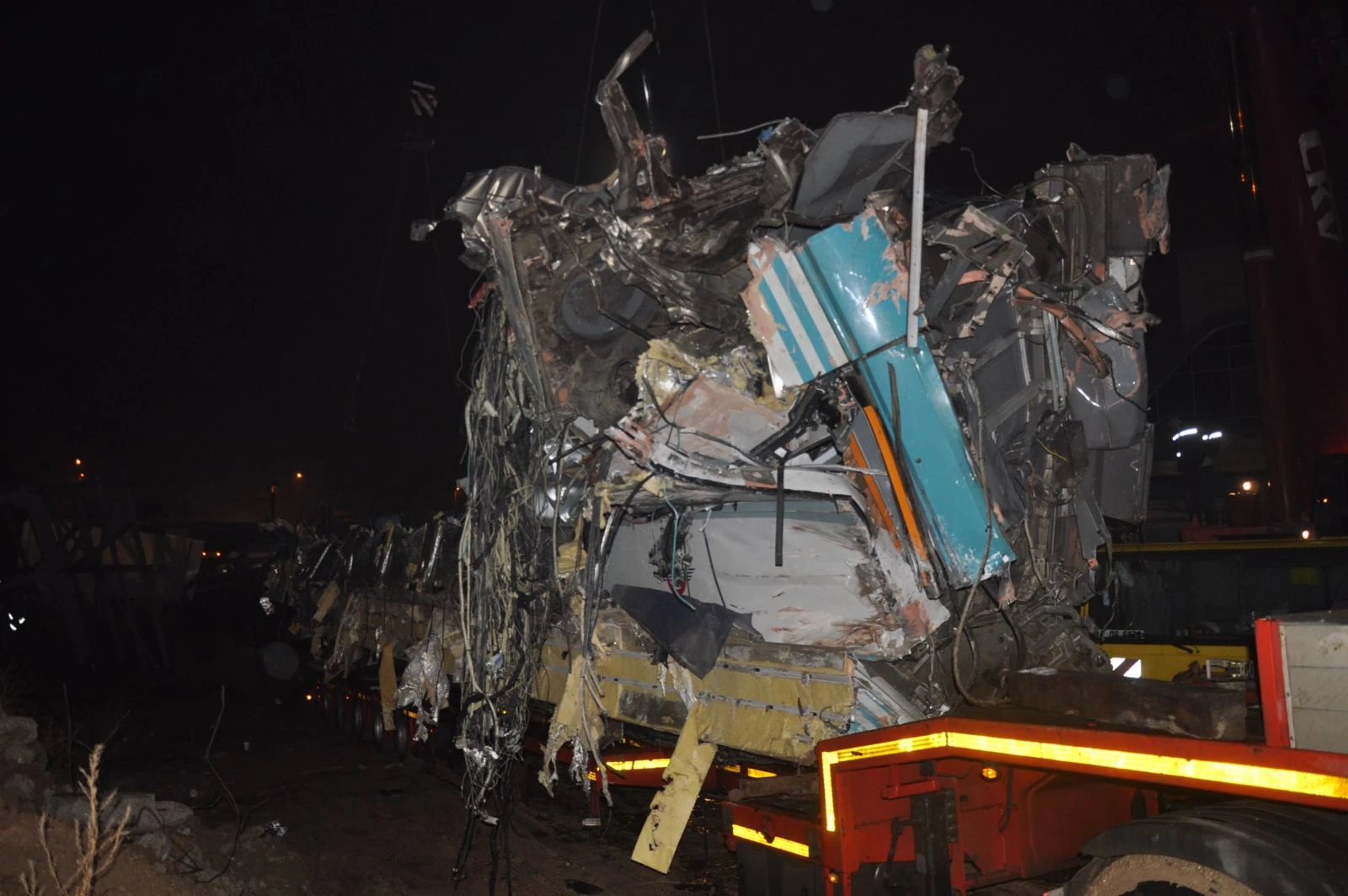 Tren raylarını bir an önce kullanıma açmak için uğraş veren itfaiye ve TCDD ekipleri, çöken üst geçidi kaldırdıktan sonra demir yığınına dönen vagonları da kaldırdı. Kaldırma çalışmasının sabaha kadar tamamlanması bekleniyor.