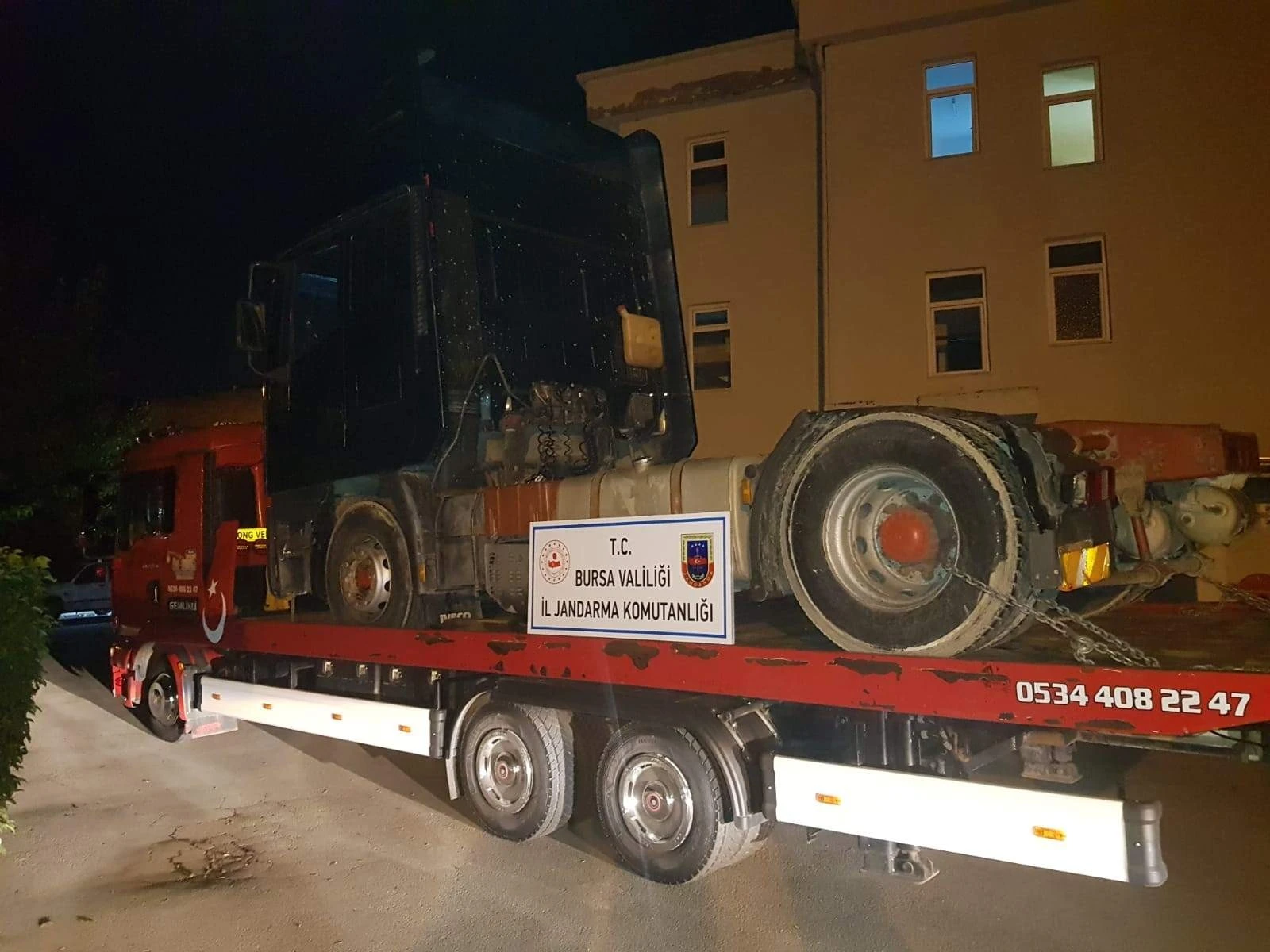 Teslim edilmesi gereken malzemelerin özelliği ve başka kişi ve grupların eline geçme tehlikesi sebebiyle Bursa İl Jandarma Komutanlığı ekipleri özel bir ekip oluşturularak harekete geçildi. İş yerinden malzemeleri alarak kayıplara karışan hırsızları araştırmaya başlayan ekipler, belgelerin tamamının sahte olduğunu ve bu şüphelilerin "Finansör, meydancı, şoför, sahte belge oluşturucu" şeklinde teşkilatlanan bir suç örgütü olduğunu belirledi. Şüphelileri yakalamak için adeta zamanla yarışan ekipler, şüphelilerin mazot aldığı akaryakıt istasyonunu belirledi. Benzer suçlardan birçok sabıkası bulunan İ.K., A.K., O.K., B.K., T.K. ve Ç.B. isimli şahıslar tarafından dört farklı çekici ve dorse ile sahte kimlik belgeleri kullanıldığı tespit edildi.