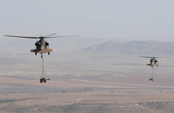 Ateş Serbest-2017'nin hava hücum harekatı kapsamında Sikorsky helikopterleri iki obüsü havadan atış sahasına getirdi. Helikopterlerden indirilen 75 milimetrelik obüs bataryalarının atışlarının ardından alandaki diğer obüslerin atışlarına geçildi.