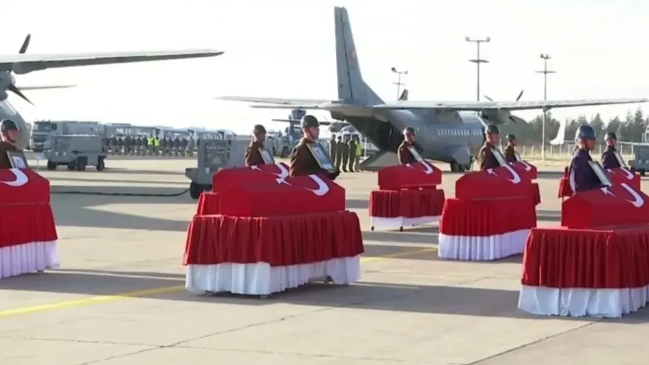 20 şehidin naaşını taşıyan uçak Türkiye'ye ulaştı. Tiflis'teki Şota Rustaveli Uluslararası Havalimanı'ndan kalkan Koca Yusuf A400M uçağı Ankara'da bulunan Mürted Havalimanı'na iniş yaptı.