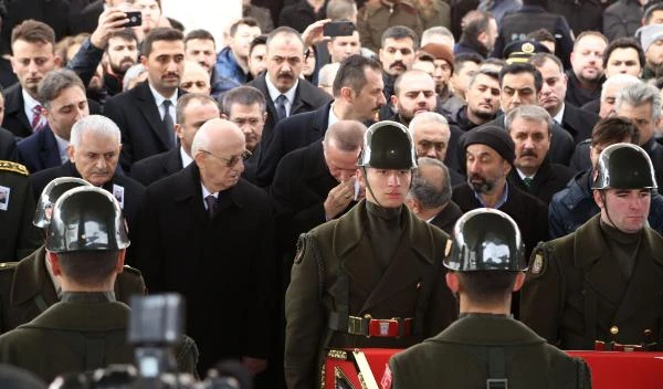Cumhurbaşkanı Erdoğan, cenaze namazı için saf tutulduğu sırada şehit Özalkan'ın Türk bayrağına sarılı tabutunu görünce gözyaşlarını tutamadı. Erdoğan, gözyaşlarını yanında bulunan mendiliyle sildi.