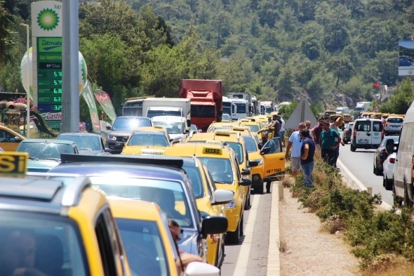 Torba Kavşağı’nda bir süre bekleyen taksiciler konvoy halinde Milas-Bodrum Havalimanı’na doğru yola çıktı. Kaynar Kavşağı’ndan itibaren taksicilerin geçişine izin verilmeyince taksiciler burada yolu çift şeritli olarak trafiğe kapattı. Yaklaşık 45 dakika trafiğe kapanan yolda kilometrelerce araç kuyrukları oluştu. Polis ekipleri dakikalarca taksicileri yolu açmak için ikna etmeye çalıştı. Taksiciler daha sonra yolun tek şeridini trafiğe açtılar.