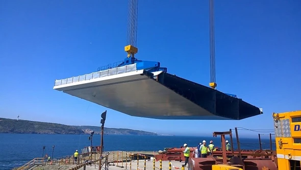 2'nci tabliyenin 4 saatlik bir çalışmayla dev vinç yardımıyla havaya kaldırılması İHA kameraları tarafından görüntülendi. ICA'nın hayata geçirdiği 3. Boğaz Köprüsü ve Kuzey Marmara Otoyolu Projesi'nde büyük bir adım daha atıldı. Halatların bağlanacağı köprü kulelerinin bitirilmesinin ardından üzerinden çift yönlü 8 şeritli otoyol ve 2 şeritli demir yolunun geçeceği çelik tabliyelerin konulma işleminde önemli bir ilerleme sağlandı.
