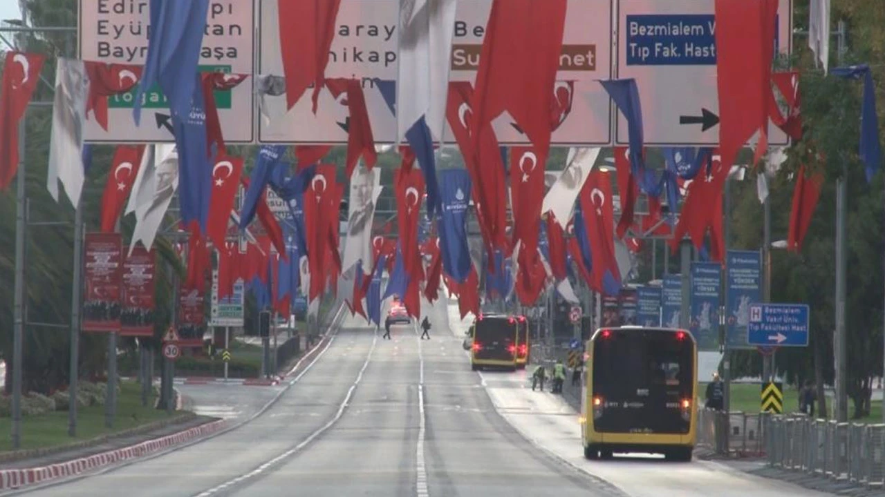 Vatan Caddesi’ne giden tüm yollara, 29 Ekim Cumhuriyet Bayramı kutlamaları nedeniyle trafik polisleri tarafından saat 07.00'da barikatlar konuldu.