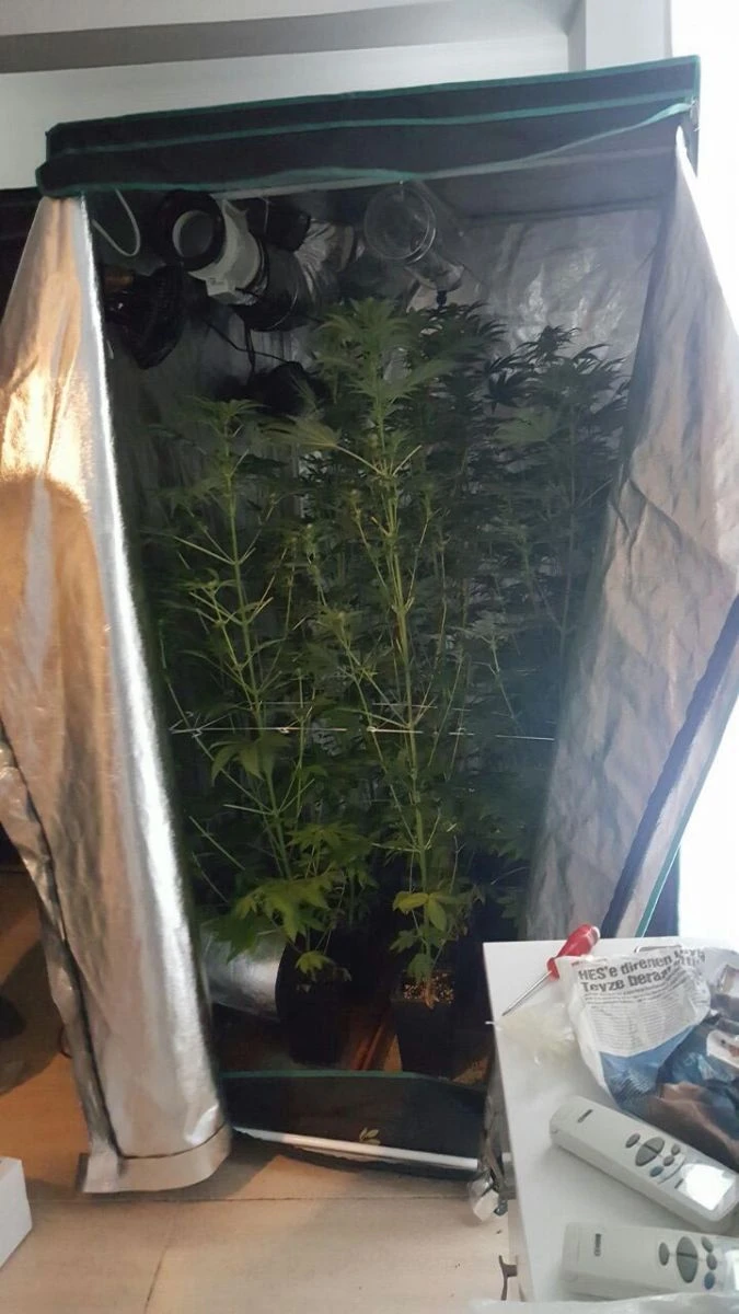 Villada yapılan aramada, özel ışık, ısı ve havalandırma sistemleri (vantilatörü, baca sistemi, ayarlı klima, ağ düzeneği), ısı ayarlamakta kullanılan termometre, tohumlar, hormon ilaçları ile alüminyum kaplı fermuarlı özel bez elbise dolapları içerisinde oluşturulmuş iki serada 29 kök hint keneviri bitkisi, bir adet hassas terazi, bir adet esrar öğütme aparatı, 19 gram kubar esrar maddesi, bir adet esrarlı sigara ve 3 gram toz esrar ele geçirildi.