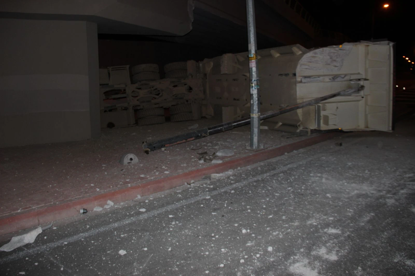 Kaza, 22.00 sıralarında Merkez Selçuklu İlçesi İstanbul Caddesi Üniversite Köprülü Kavşağında meydana geldi. Edinilen bilgiye göre, Hüseyin H. idaresindeki 42 S 8686 plakalı tır, Kadınhanı’nda arızalanan hafriyat kamyonunu Konya'ya getirmek için ilçeden yola çıktı. Şehir merkezi istikametine seyir halinde olan tır köprülü kavşakta virajı alamadı. Bu sırada kontrolden çıkan tırın taşıdığı hafriyat kamyonu dorse üzerinden yola düştü. Dorseden düşen kamyon köprülü kavşağın ayağına çarparak durabildi. Olayın şokuyla tırdan inen sürücü Hüseyin H. durumu hemen polis ekiplerine bildirdi. Kısa sürede olay yerine ulaşan ekipler kavşakta oluşabilecek başka bir kazaya karşı önlem aldı. Kaza sonrası şans eseri tıra yakın başka bir aracın bulunmaması ise büyük bir facianın önüne geçti. Kazada yaralanan olmazken, dorse üzerinden düşen kamyonda büyük çaplı maddi hasar oluştu.