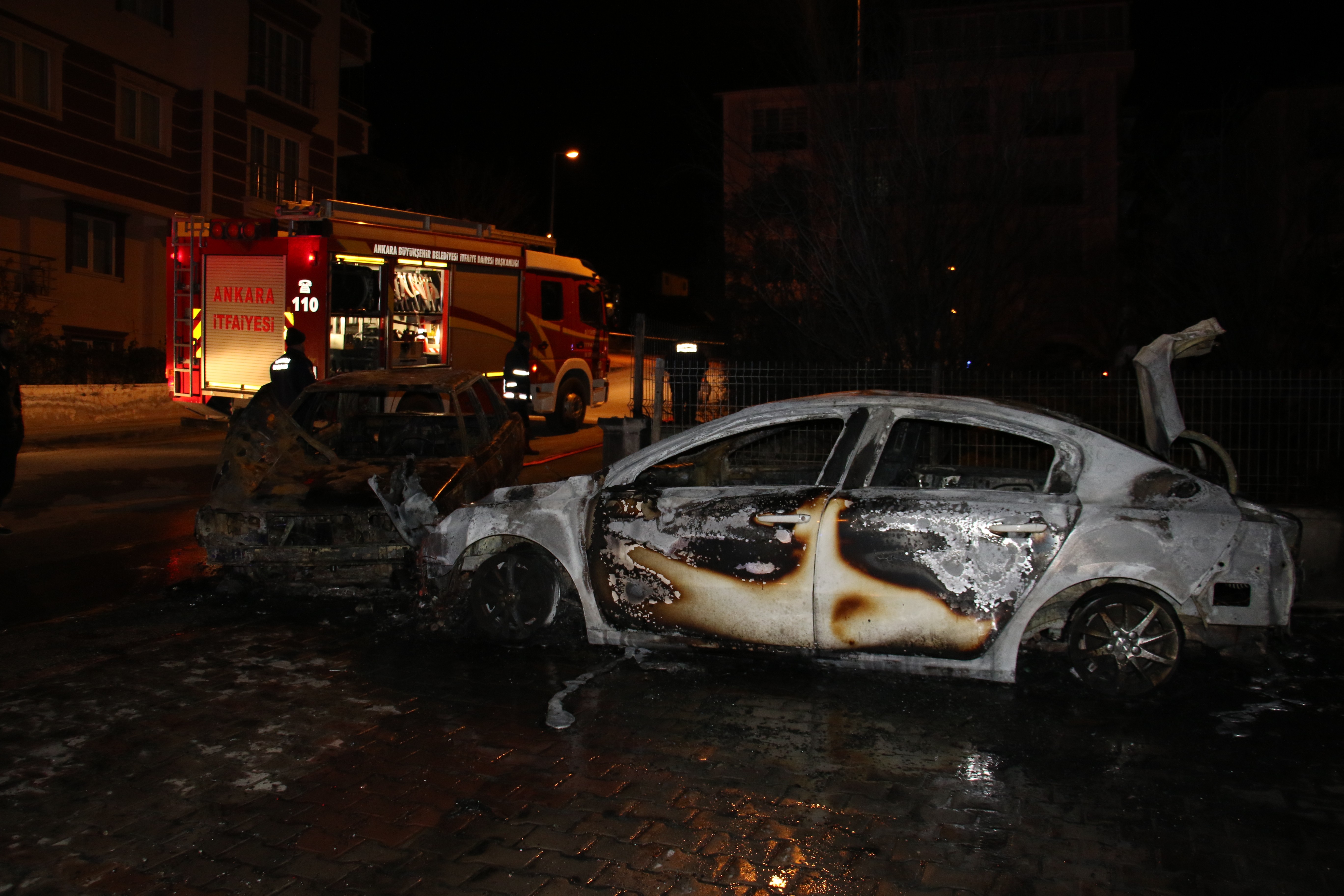 Olay, saat 01.00 sularında Ankara’nın Etimesgut İlçesi Topçu Mahallesi 1548. Cadde üzerinde bulunan Aydınlar Sitesi önünde meydana geldi. Edinilen bilgilere göre, Caddenin üst kısmında bulunan bir otomobil henüz belirlenemeyen bir sebeple yanmaya başladı. Alevlerin etkisiyle frenleri boşalan otomobil, Aydınlar Sitesi önünde park halinde bulunan başka bir araca çarptı. Büyüyen alevler kısa sürede iki otomobili de sardı. Çarpan otomobil ve park halindeki araç yanarak kül oldu. Vatandaşların ihbarı üzerine olay yerine polis, itfaiye, 112 Acil Servis ve Olay Yeri İnceleme ekipleri sevk edildi. Yangında can kaybı yaşanmazken, iki araç da hurdaya döndü.