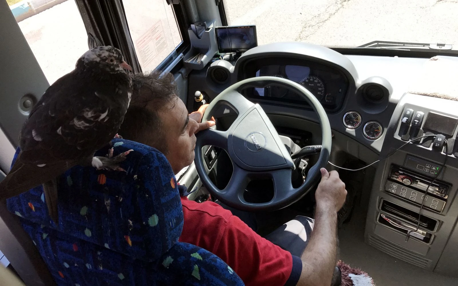 Kent merkezinde halk otobüsü şoförlüğü yapan Sebahattin Yılmaz, yaklaşık 2 ay önce yolda yaralı bir güvercin bularak otobüse alıp evine götürdü. Evde bir süre yaralı hayvanın bakımını yapan Yılmaz, sağlığına kavuşan ve "Zeytin" adını verdiği güvercinle şimdi direksiyon sallıyor.
