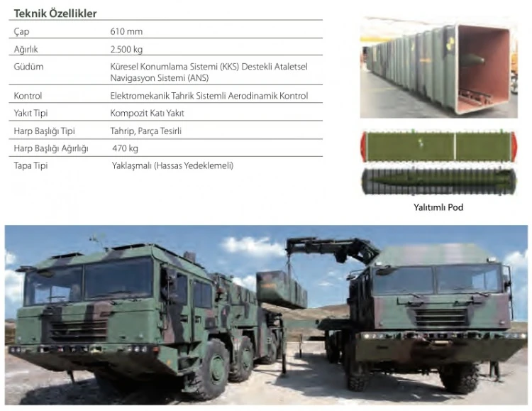ROKETSAN tarafından geliştirilen ve üretilen 610 milimetre çaplı KAAN füzesi, ordu etki sahası içerisinde yüksek öncelikli hedefler üzerinde yoğun ve etkili ateş gücü sağlıyor.