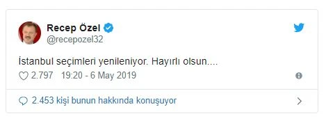 YSK üyeleri, AK Parti’nin itirazını 4'e ret oyuna karşı 7 oyla kabul etti. YSK'nın kararını AK Parti YSK Temsilcisi Recep Özel de sosyal medya hesabından duyurdu. AK Partili Özel, "İstanbul seçimleri yenileniyor. Hayırlı olsun..." dedi.