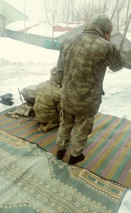 KARLAR İÇİNDE NAMAZ KILAN MEHMETÇİK