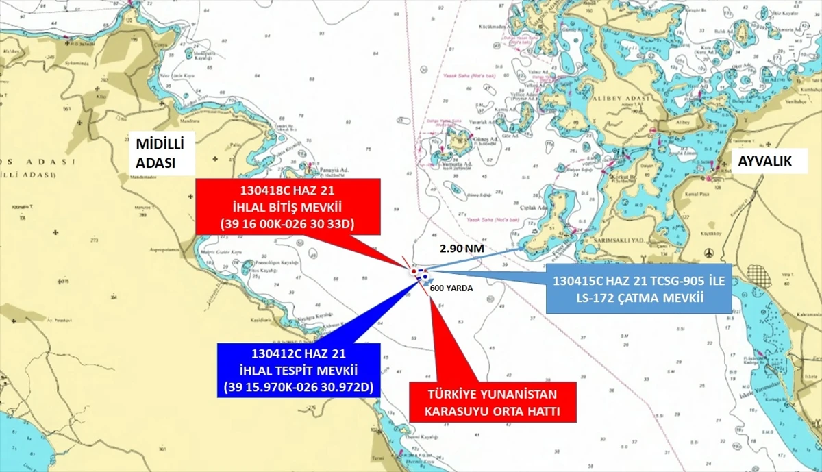 Yunan sahil güvenlik botu, bölgeyi terk etmesi yönünde yapılan telsiz çağrılarına karşılık vermedi. Türk sahil güvenlik botu üzerine sürülerek, Yunan sahil güvenlik botu Türk kara sularından çıkarıldı. Yapılan manevralar esnasında iki bot arasında sürtme yaşandı. Türk sahil güvenlik botunda herhangi bir hasar meydana gelmedi.
