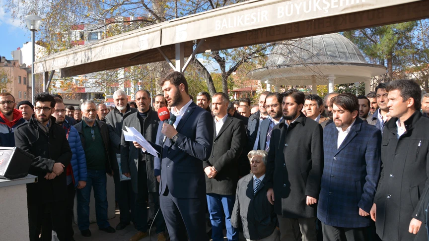 Balıkesir'de Zağnos Paşa Camisi önünde bir araya gelen sivil toplum kuruluşları üyeleri basın açıklaması yaptı.