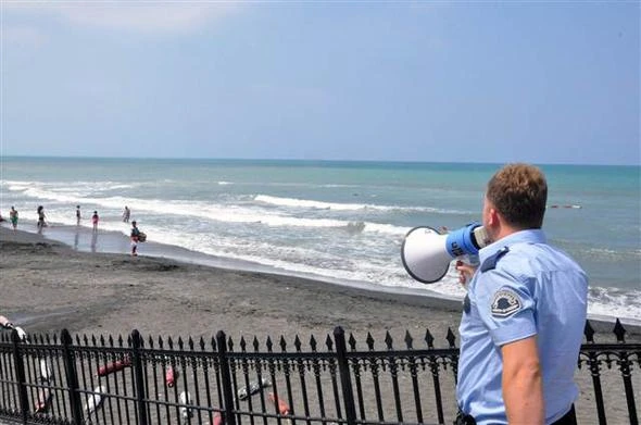 Plaja gelen polisler, megafonla anons yaparak vatandaşları denizden çıkarmaya çalıştı. Anons üzerine denizden çıkan vatandaşların, polis ve cankurtaranların başka alana geçmesiyle yeniden denize girdiği görüldü.