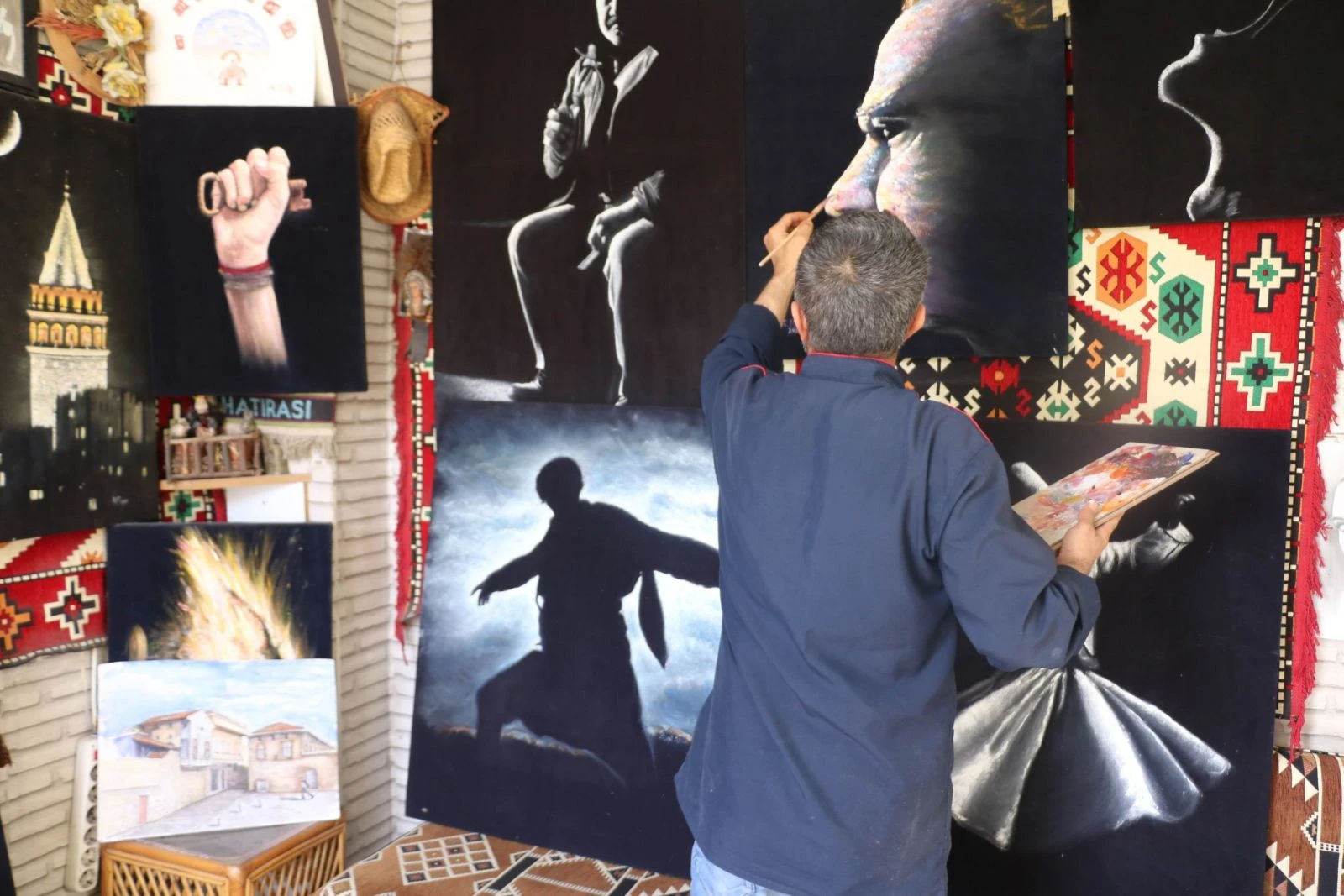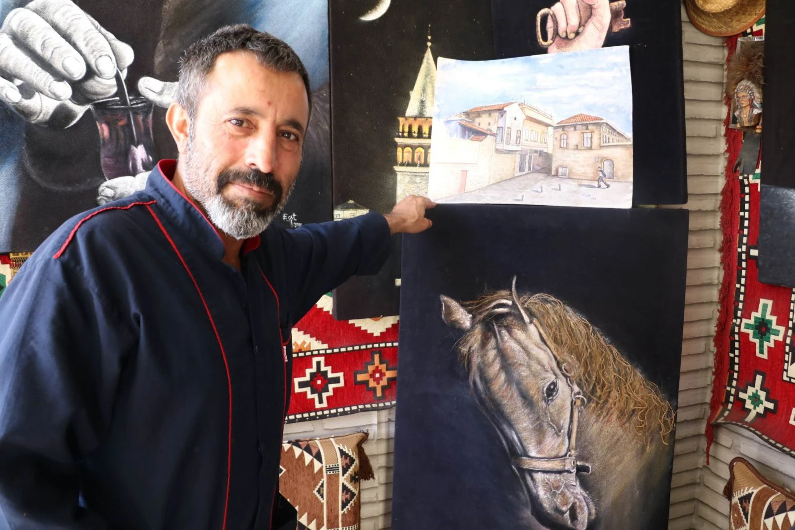İlkokul mezunu Gaziantepli 53 yaşındaki Esat Yağmur 5 metrekarelik tostçu dükkanında polar kumaş üzerine çizdiği resimlerle takdir topluyor. Yağmur, yaptığı resimlere ise Almanya gibi bir çok ülkeden talep olduğunu ifade etti.