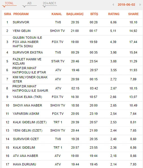 İşte 2 haziran reytingler