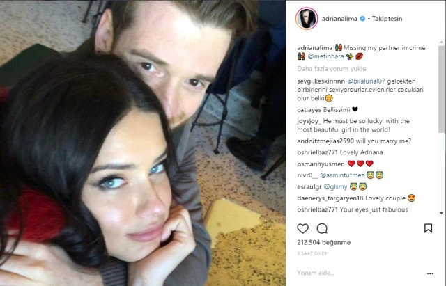 Kısa bir süre önce evlilik yolunda ilerlediği sevgilisi Hara'ının ailesiyle tanışan Adriana Lima, sosyal medya hesabından yazar Metin Hara ile çektiği bir selfiesini paylaştı ve altına "Özlüyorum seni suç ortağım" notunu düştü.