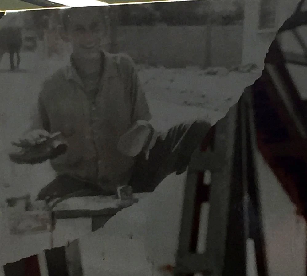 Birçok filmde başrol oynayan ünlü oyuncu Menderes Samancılar’ın ayakkabı boyacılığı yaptığı fotoğrafı bir kebapçının duvarını süslüyor.