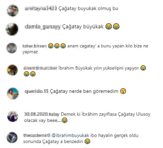 Çağatay Ulusoy'u İbrahim Büyükak'a benzetenlerden bazılarının yorumları ise şu şekildeydi: