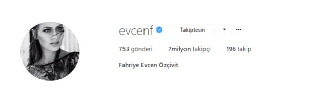 Sosyal medyayı sık sık kullanan Fahriye Evcen, günlük yaşantısını genel olarak takipçileriyle paylaşmayı ihmal etmiyor. Burak Özçivit ile mutlu bir birliktelik yaşayan Fahriye Evcen, Instagram hesabına Burak Özçivit'in soyadını da ekledi. Böylece Fahriye Evcen Özçivit oldu.