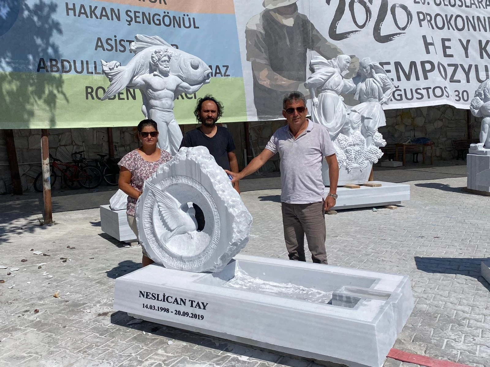 Marmara Belediye Başkanı Aksoy, yaptığı açıklamada, “Vefatından büyük üzüntü duyduğumuz kanserle mücadelesinde tüm Türkiye’ye örnek olan Neslican kızımızın anıt mezar yapımını Marmara mermeri kullanılarak yapmak istediğimizi sanatçımıza ilettik. Anıt mezar yapım işinde gönüllü olan heykeltıraş Hakan-Özlem Şengönül ile birlikte, Haluk Levent ile yaptığımız görüşmeler neticesinde çalışmalara başladık. Neslican kızımızın dik duruşuyla kararlılıkla yürüttüğü bu güçlü mücadelenin sol ayağını kaybeden bir güvercin sayesinde olduğunu belirten yazılarına istinaden anıt mezarda sembol olarak bir güvercin kullanılmasına karar verilerek çalışmaların devam ettirildiğini söyledi."