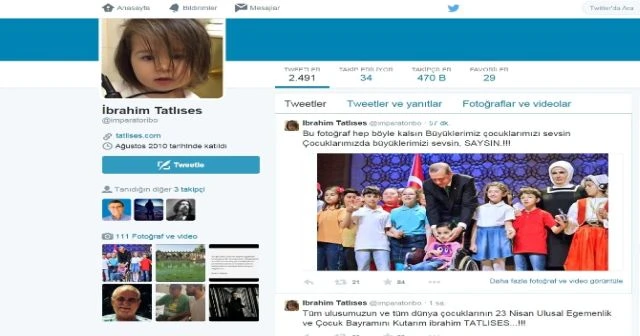 ABD’de tedavi gören İbrahim Tatlıses, resmi Twitter hesabından 23 Nisan Ulusal Egemenlik ve Çocuk Bayramı’nı kutladı. Tatlıses mesajında, ‘’Tüm ulusumuzun ve tüm dünya çocuklarının 23 Nisan Ulusal Egemenlik ve Çocuk Bayramını Kutarım ibrahim TATLISES...!!!’’ ifadelerine yer verdi. Ünlü sanatçı ayrıca, Cumhurbaşkanı Erdoğan’ın çocuklarla çekilmiş bir fotoğrafını, ‘’Bu fotoğraf hep böyle kalsın Büyüklerimiz çocuklarımızı sevsin Çocuklarımızda büyüklerimizi sevsin, SAYSIN.!!!’’ notuyla paylaştı. ABD’de tedavi görev İbrahim Tatlıses, 9 Mart’ta kritik bir beyin ameliyatı geçirmiş ve bir süre yoğun bakımda kalmıştı.