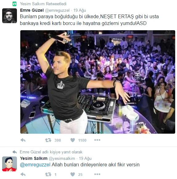 DJ'lik yaptığı mekanlardan ve çektiği videolardan aylık 200 bin lira kazanan Kerimcan için bir twitter kullanıcısı önceki gün şöyle bir mesaj attı: "Bunların paraya boğulduğu bir ülkede Neşet Ertaş gibi bir usta, bankaya kredi kartı borcuyla hayata gözlerini yumdu."